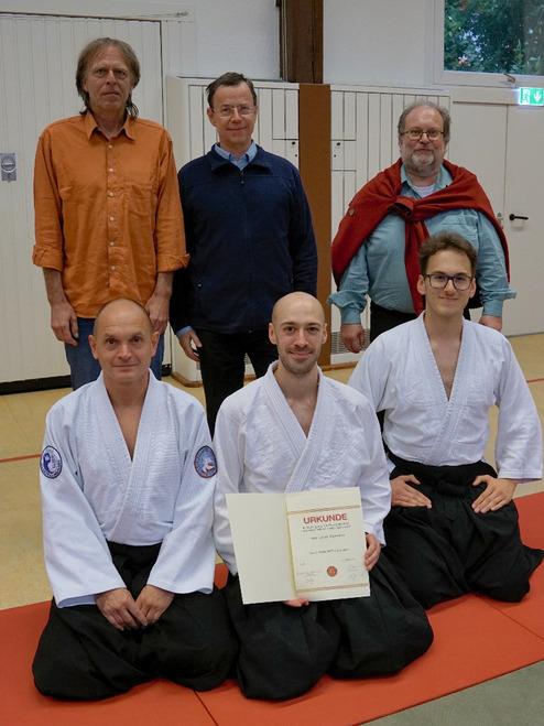 Kata, Randori, Waffentechniken und so weiter. Alles überzeugte, so dass er am Ende die Urkunde zum 3. Dan in den Händen halten konnte.
