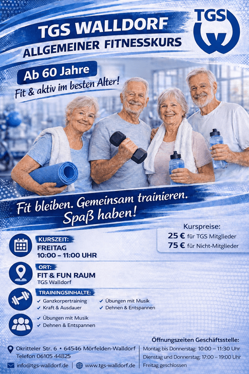Sie erreichen uns Montag bis Donnerstag von 10:00 – 11:30 Uhr und Dienstag & Donnerstag von 17:00 – 19:00 Uhr: 06105/44825 info@tgs-walldorf.de