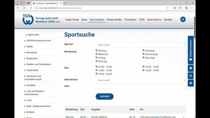 Auf unserer Homepage findest du alle Sportangebote. Über die Sportsuche kannst du dir den Sport anzeigen lassen, der zu deinem Zeitplan passt.