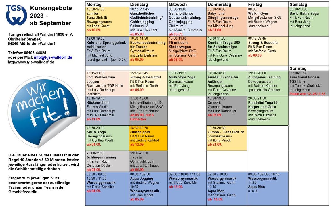 Ort: Fit & Fun im TGS-Sportzentrum (Erdgeschoss)