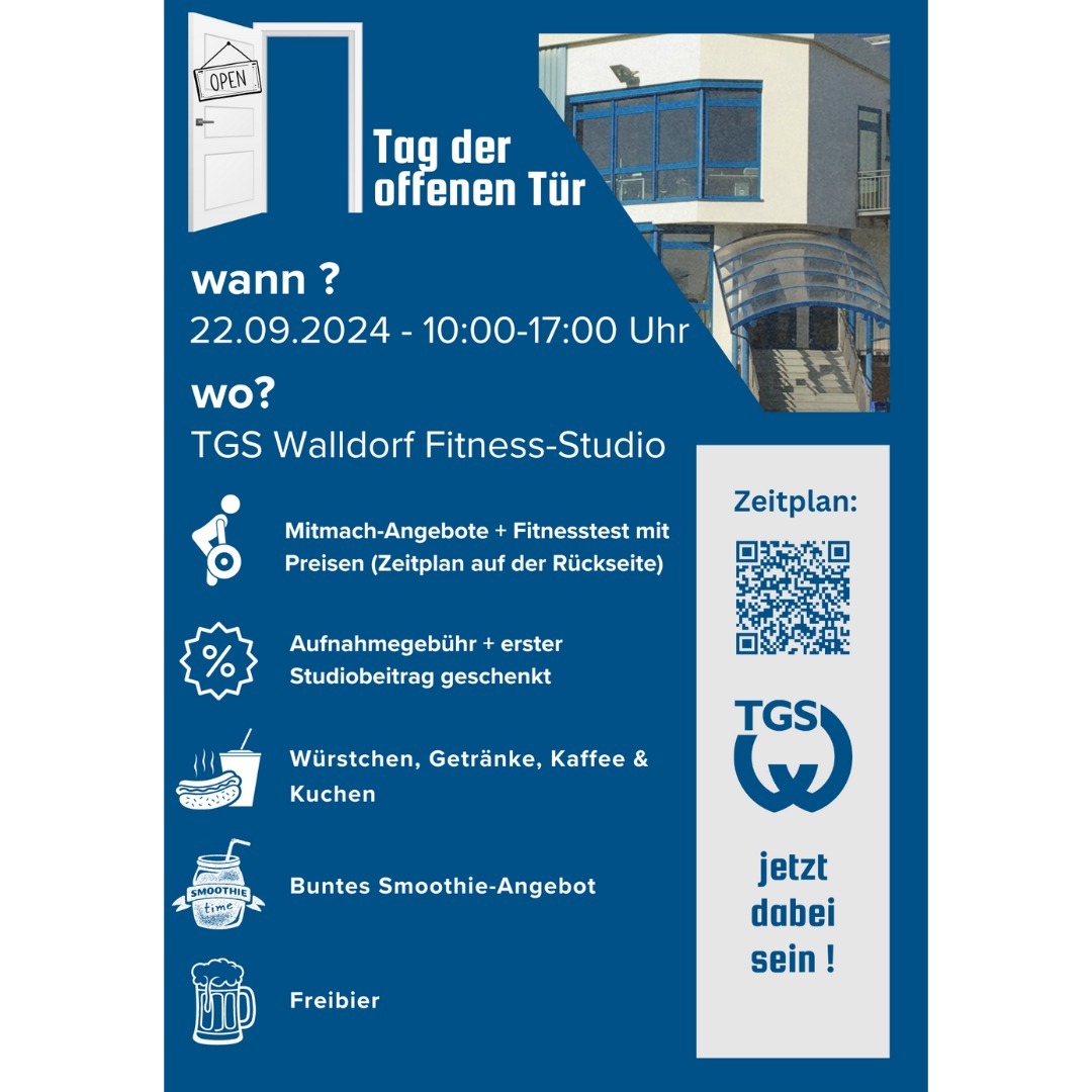 Am 22.09. laden wir Euch herzlich zu unserem Tag der offenen Tür in unserem Fitness-Studio ein! Entdeckt unser breites Angebot, erlebt spannende Mitmach-Workouts und genießt einen Tag voller Fitness, Spaß und gesunder Leckereien.