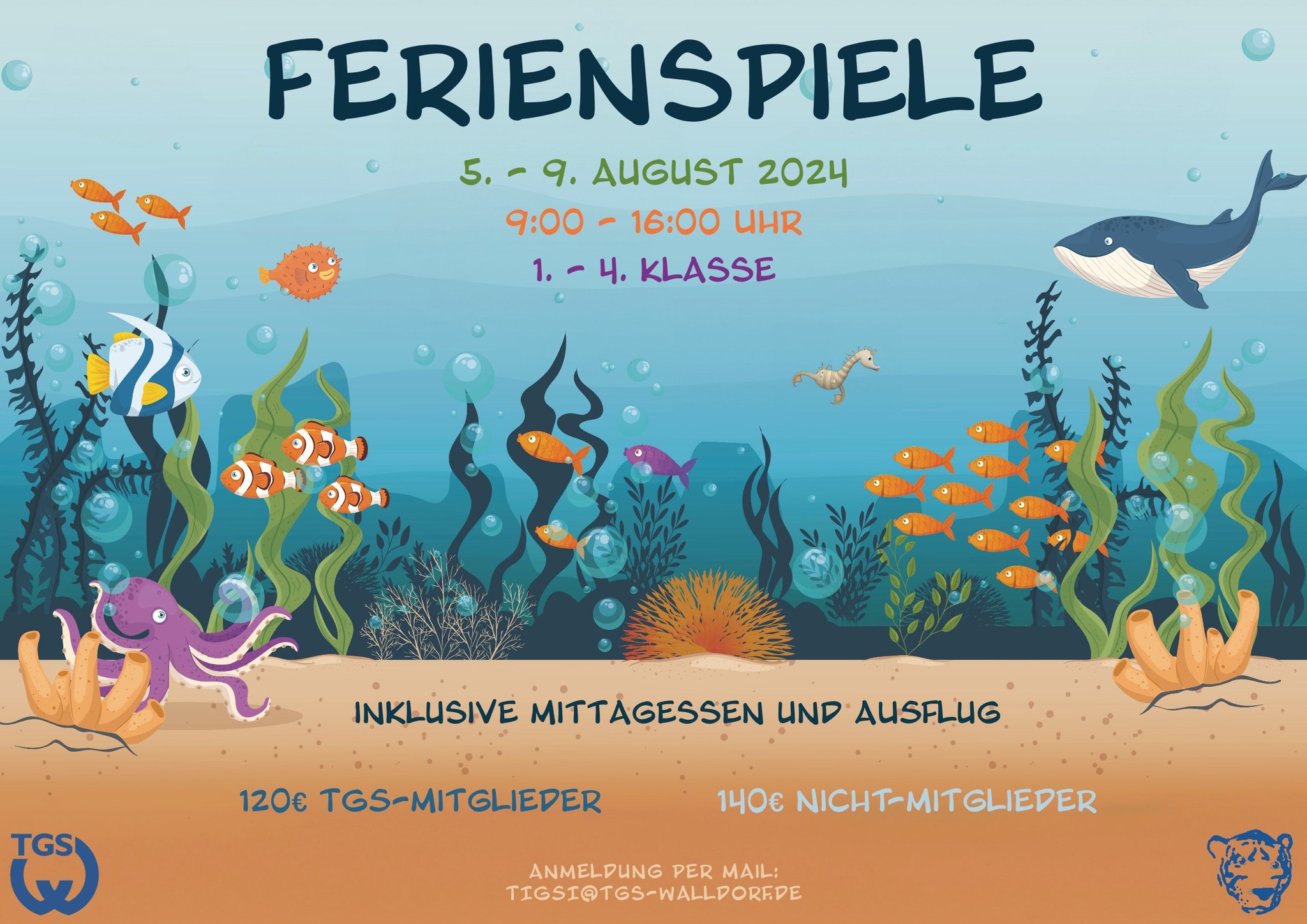 In der Woche vom 5. bis 9. August 2024 finden unsere Ferienspiele statt. In diesem Jahr ist das Motto die Unterwasserwelt - taucht mit uns in eine spannende Woche.