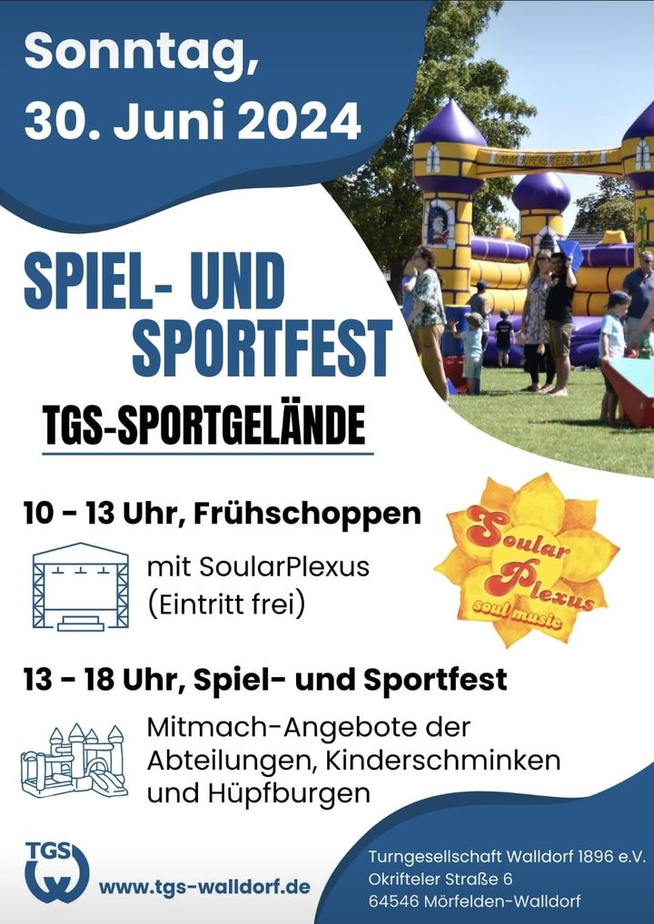 Ab 13 Uhr: Spiel- und Sportfest auf dem TGS Sportplatz - mit vielen Mitmachangeboten der Abteilungen, Hüpfburgen und einer Menge Spaß!