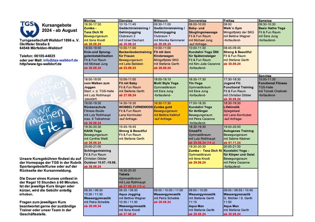 Einige der Kurse laufen weiter, andere starten ab August. Findest du den Vermerk "auf Anfrage", kannst du dich gerne bei unserem Team der Geschäftsstelle melden. Du wirst informiert, wann es los geht.
