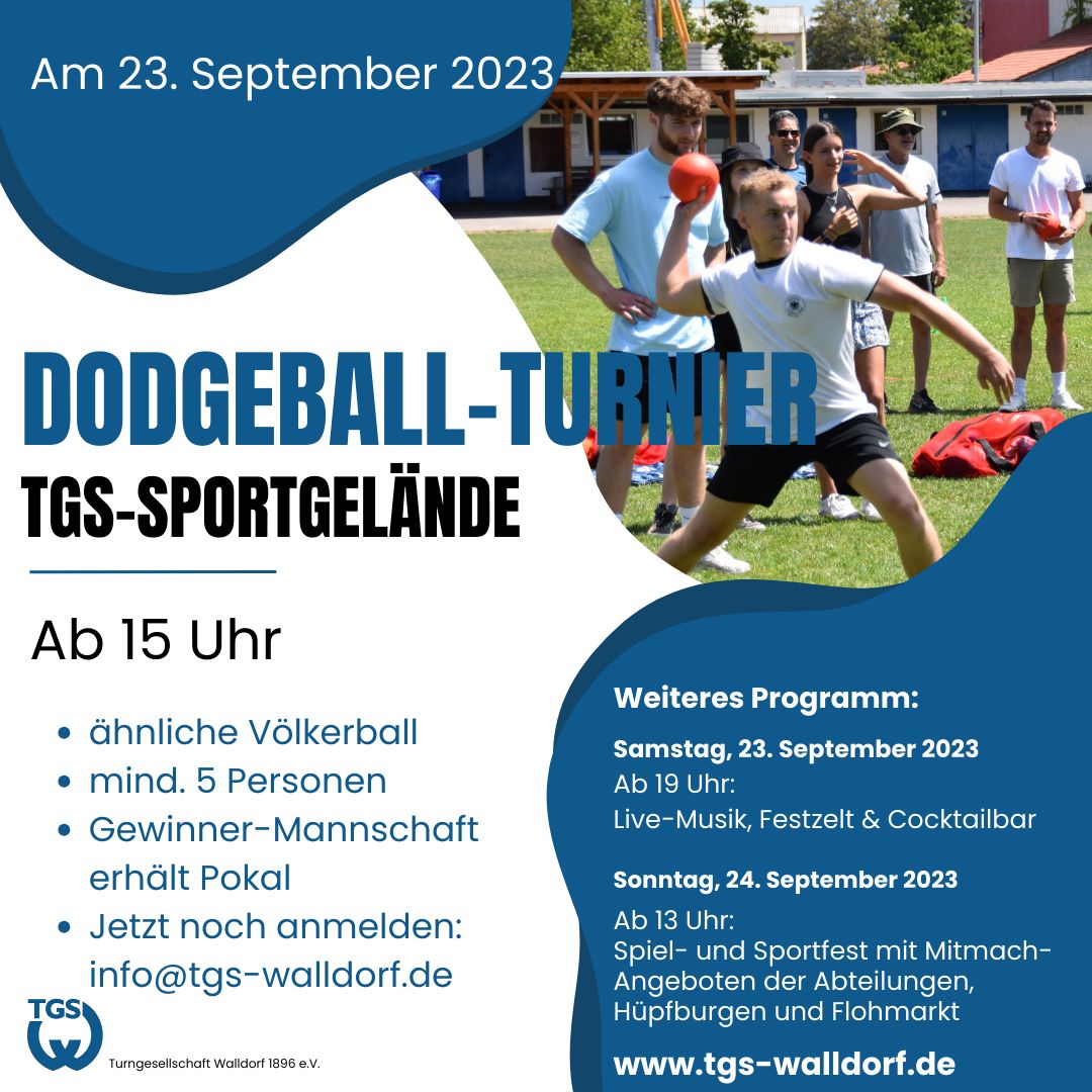 Am Samstag startet um 15 Uhr das Dodgeball-Turnier für "Jedermann". Als Mannschaft könnt ihr euch unter info@tgs-walldorf.de anmelden.