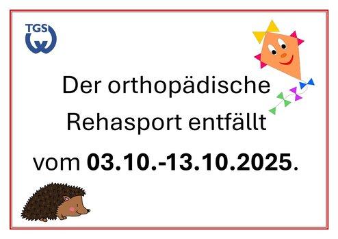der orthopädische Rehasport entfällt vom 03.10.-13.10.2025.