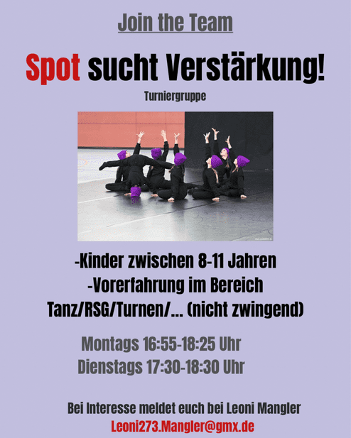 Bei Interesse an unseren Spezialworkshop und unserem Breitensport-Tanz-Angebot für alle Levels nutzt direkt die Übersicht in Fragab oder meldet Euch gern über tanzenbreitensport@tgs-walldorf.de