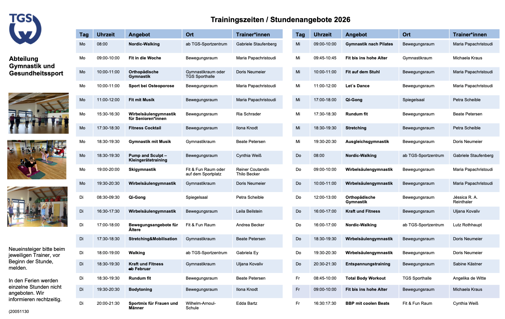 Ort: Bewegungsraum TGS-Bewegungszentrum (über dem Fitness-Studio)