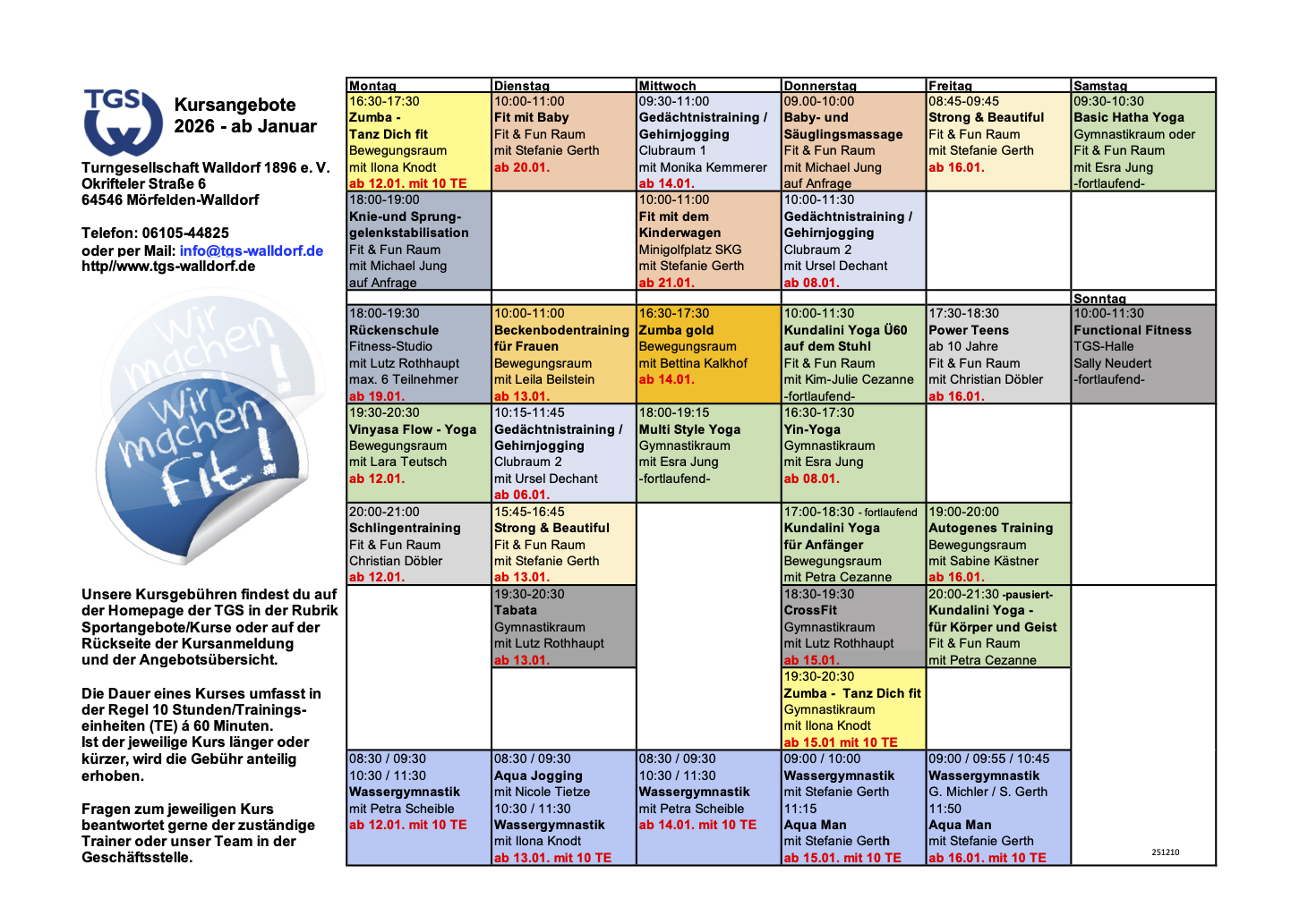 Ort: Fit & Fun im TGS-Sportzentrum (Erdgeschoss)