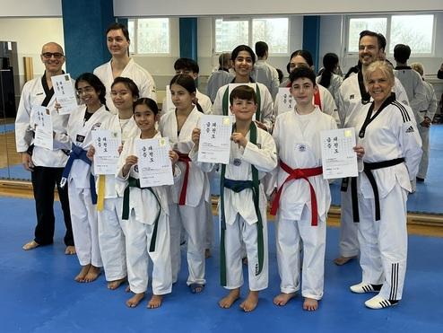 Mit steigender Graduierung wächst auch der Anspruch – und die Anspannung war bei einigen deutlich zu spüren. Doch am Ende zahlte sich das Training aus: Alle Teilnehmer bestanden ihre Prüfung erfolgreich. Lediglich einige Bruchtestbretter mussten der Entschlossenheit der Prüflinge Tribut zollen.